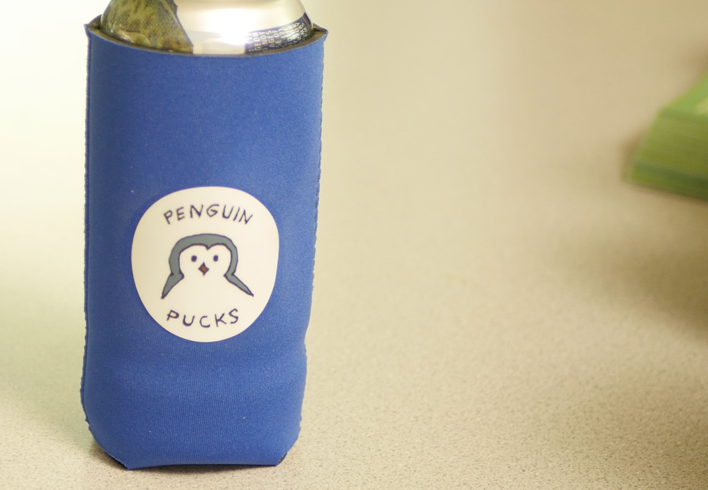 Penguin Puck Coozie fits your favorite 12-ounce can with a cool Penguin Puck underneath!